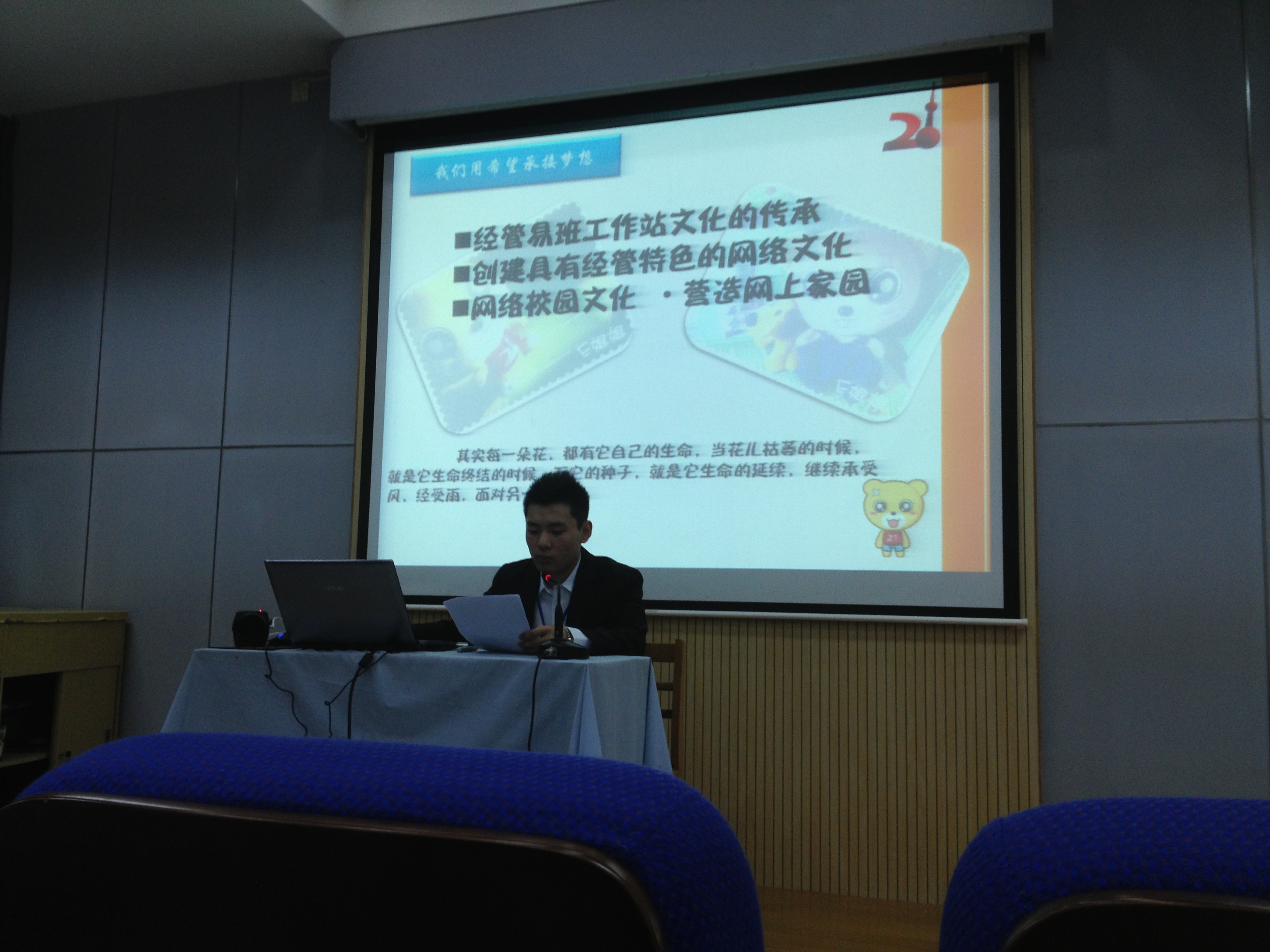 “网络校园文化 营造网上家园”经济与管理系2012至2013学年第二学期易班学生工作站总结会议于2013年6月6日在图文信息中心小报告厅进行。学院副院长徐松鹤老师、经管系杨利老师、学工部学院易班工作站指导老师陈真老师、学院易班工作站执行站长王武同学以及经管系部分辅导员和所有系易班学生工作站的成员参加了此次会议。