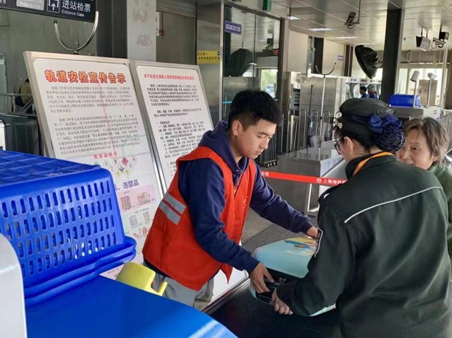 (优秀团干部张驰同学在公路地铁站进行志愿服务)