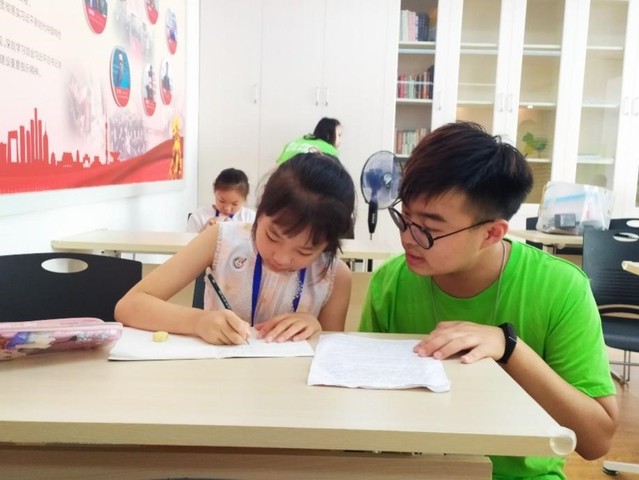 (优秀团员吴健辉同学在2019年爱心暑托班与孩子的合照)