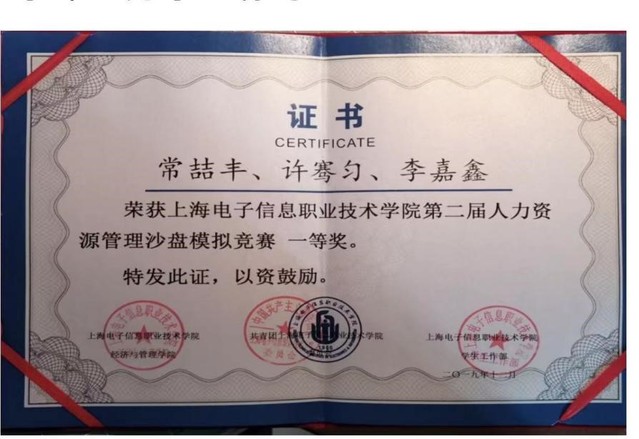 191会展2团支部书记许骞匀同学具有较好的学习风貌,热爱学习,认真学习专业知识,积极参加技能比赛。她在2019年12月我校“第二届人力资源管理沙盘模拟竞赛”中获得一等奖。