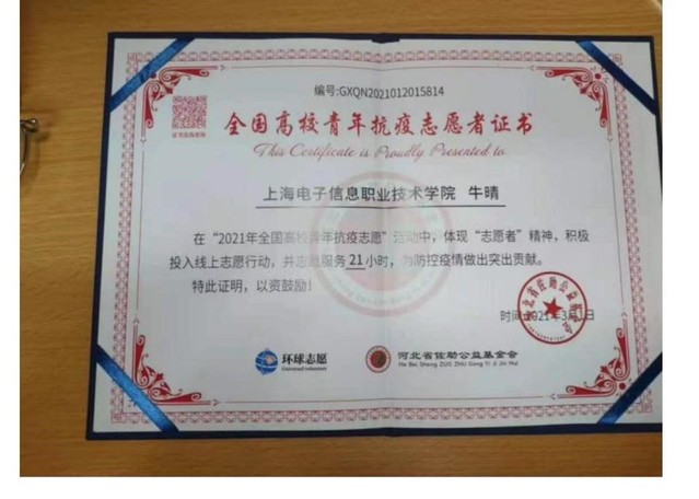 20会计3团支部书记牛晴同学利用假期期间,参加线上抗疫志愿者,积极投入线上志愿行动,体现出了志愿者精神。