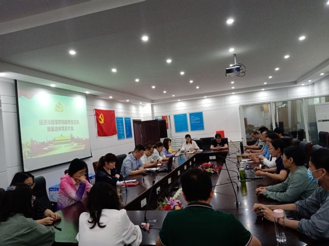 6月2日,经济与管理学院教师党支部召开换届选举大会。校党委委员、副校长窦争妍、支部党员参加大会。