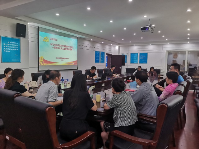 7月1日下午,经济与管理学院教师党支部组织党员教师开展主题党日活动,学习习近平在庆祝中国共产党成立100周年大会上重要讲话精神,与会党员教师逐一畅谈个人的心得体会。校党委委员、副校长窦争妍以普通党员身份参加活动。