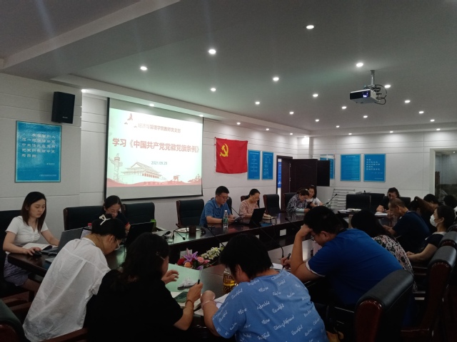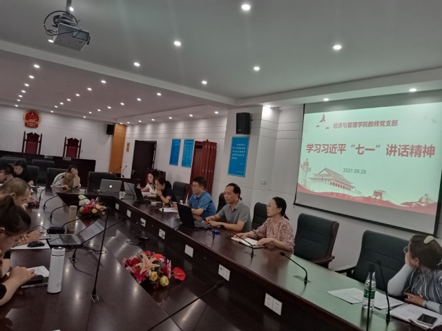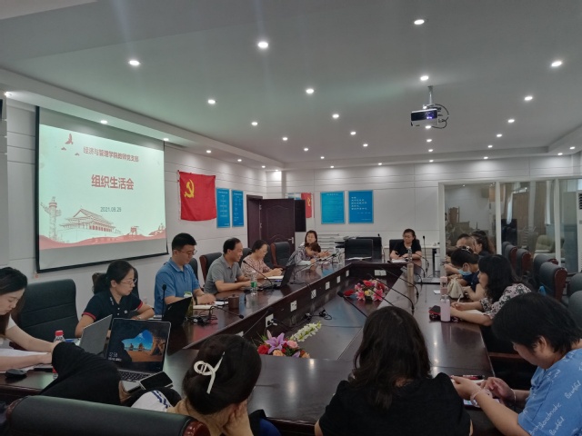 2021年9月29日下午,经济与管理学院教师党支部召开组织生活会,专题学习习近平总书记“七一”重要讲话精神和《中国共产党党徽党旗条例》。