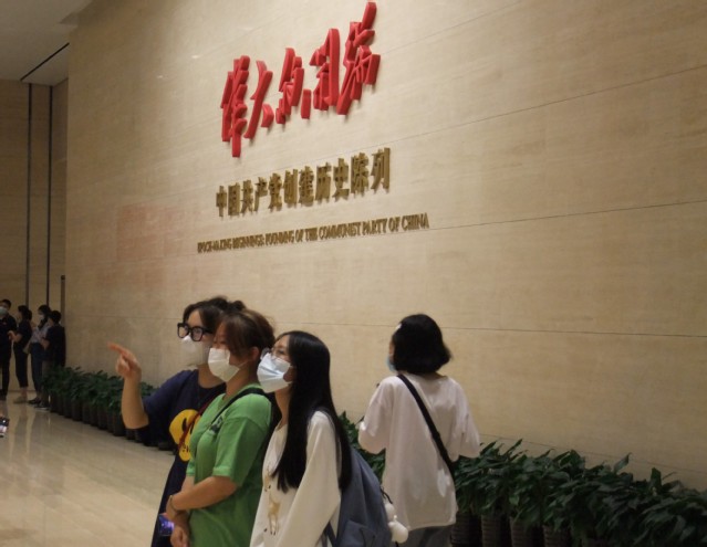 不忘初心,誓言铮铮。老师和同学们在讲解员的带领下瞻仰了中共一大代表群像浮雕,参观了“前赴后继、救亡图存”“风云际会、相约建党”“群英汇聚、开天辟地”等专题展区,详细了解了中国共产党为挽救国家和民族危亡进行的英勇斗争和艰苦探索,学习革命先烈对理想信念的执着追求和坚守。