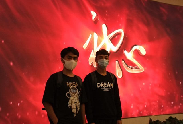 (少数民族学生代表在“初心”二字前的合影)