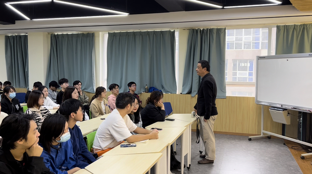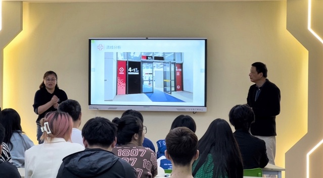 作为国家会展中心标识的设计者,陆教授播放了自己设计团队的相关的工作视频,带领同学们了解了东华大学设计团队为国家会展中心设计的“四叶草”标志融合方案。同学们对陆教授的设计充满了兴趣,所以在演讲未开始之前,就便迫不及待的和陆教授展开了互动提问。讲座中,陆老师还耐心细致地讲解了自己的从业经历和行业经验,并结合当前形势,对会展专业进行了全面解读,鼓励学生多多参与会展类的实践活动,了解未来会展行业的发展趋势,明晰会展专业学习的基本方向。