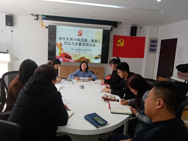 为进一步加强学生党支部建设,壮大学生党支部力量,2021年12月6日,经济与管理学院学生党支部在I 105召开了党员大会。对接收发展对象刘旗、周新人两位同志为预备党员事宜分别进讨论和表决。会议由学生党支部书记殷菲老师主持。大会在雄壮的国歌声中开始。
