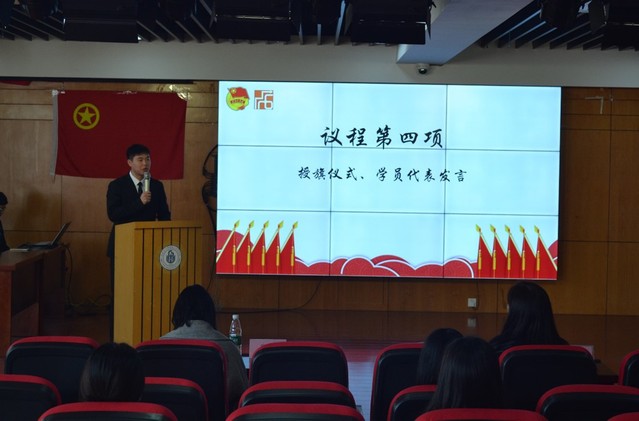 学员代表季天骅同学上台发言,他倡议全体学员坚定马克思主义信仰,坚定信念跟党走,不断的在学习中成长锻炼,在实践中坚守价值的追求,努力为成为社会主义合格的建设者和可靠的接班人。