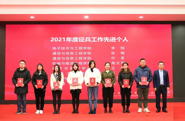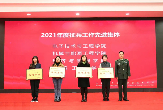 经济与管理学院在征兵工作中一直贯彻落实上海市关于征兵工作的决策部署,根据学校人民武装部的工作部署,在学院党总支的有力指导下,主动适应常态化疫情防控形式和一年两次征兵的工作要求,不折不扣地完成年度征兵工作任务。在2022年1月5日下午,学校召开2021年度征兵工作总结表彰大会暨2022年征兵工作部署会上,经济与管理学院荣获2021年度征兵工作“先进集体”称号,王倩老师荣获2021年度征兵工作“先进个人”称号,程健老师作为廉洁征兵监督员代表接受了廉洁征兵监督员聘书。