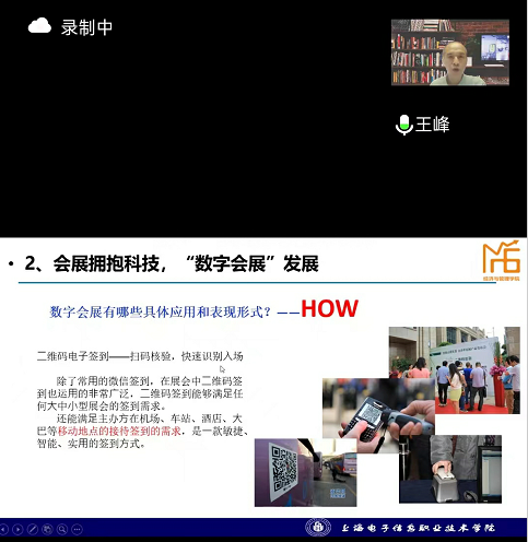 2022年6月13日下午,上海电子信息职业技术学院经济与管理学院与上海市奉贤区科学技术委员会联合主办的专题讲座在腾讯会议开讲,本次奉贤区科普大讲坛讲座以“数字会展”到“会展+元宇宙”为主题,面向奉贤区全体居民,由经济与管理学院会展专业主任王峰老师主讲。
