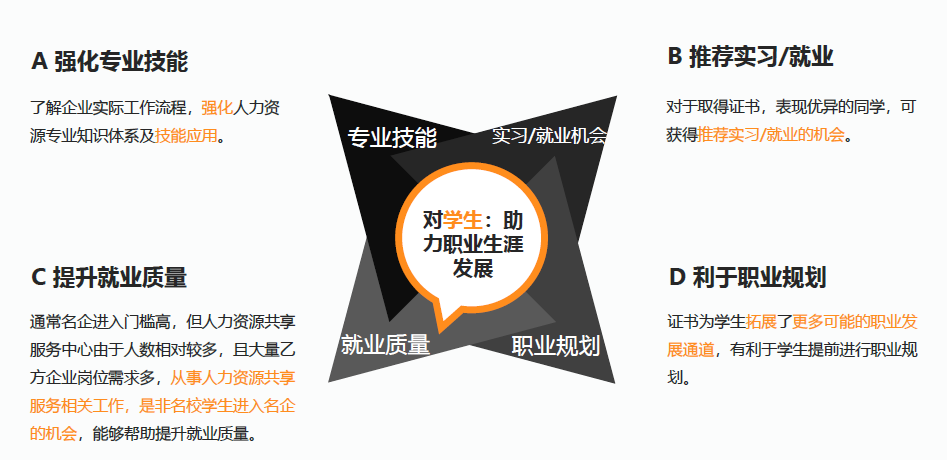 人力资源共享服务涵盖行政事务共享、专业事务共享、数字化应用、运营服务管理等多个工作领域内容。随着市场对于人力资源共享服务从业者的需求与日俱增,从事人力资源共享服务已成为大部分学生特别是“非名校学生”进入名优企业,开启人力资源职业生涯发展的大好机会。