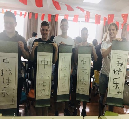 德国留学生中秋节学习中国书法