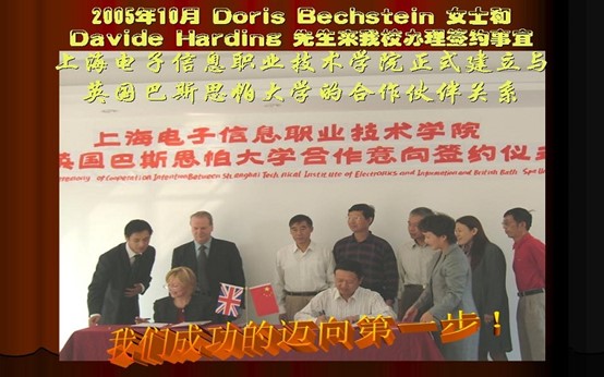 上海电子信息职业技术学院与英国巴斯思帕大学合作办学项目是为适应我国教育国际化的发展趋势,引进国外优质教育资源,进一步提升我院经济与管理系国际商务专业的国际化水平而开展的“3+1”专升本中英合作办学项目。该项目始于2005年10月,经历了“3+2”到“3+1”的合作办学模式变革,通过“专升本留学项目”、“冬夏令营短期考察项目”、“暑期学生海外学习、实习项目”、“暑期教师研修班”等形式多层次多方面地开展中英合作交流。