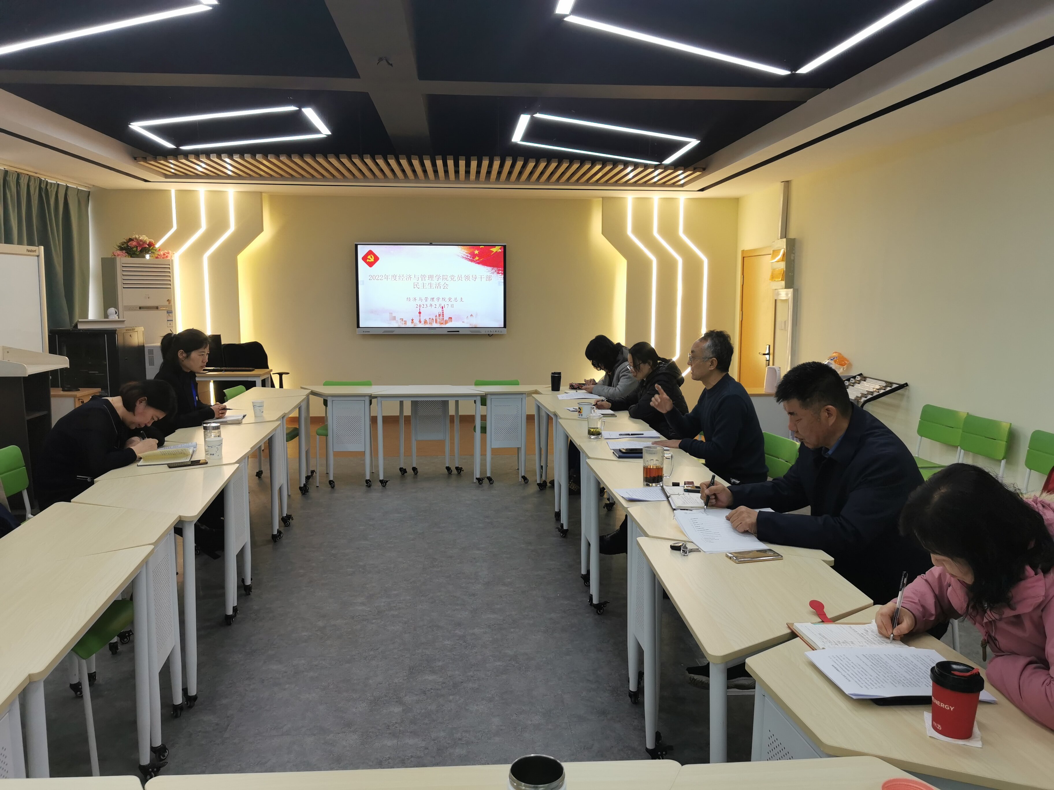 根据上级和学校党委工作部署和要求,2023年2月17日上午9:00,经济与管理学院召开了2022年度领导班子民主生活会。副校长窦争妍、组织部沈瑞环老师到会指导。经济与管理学院领导班子全体成员参加会议。会议由党总支书记蔡军林主持。