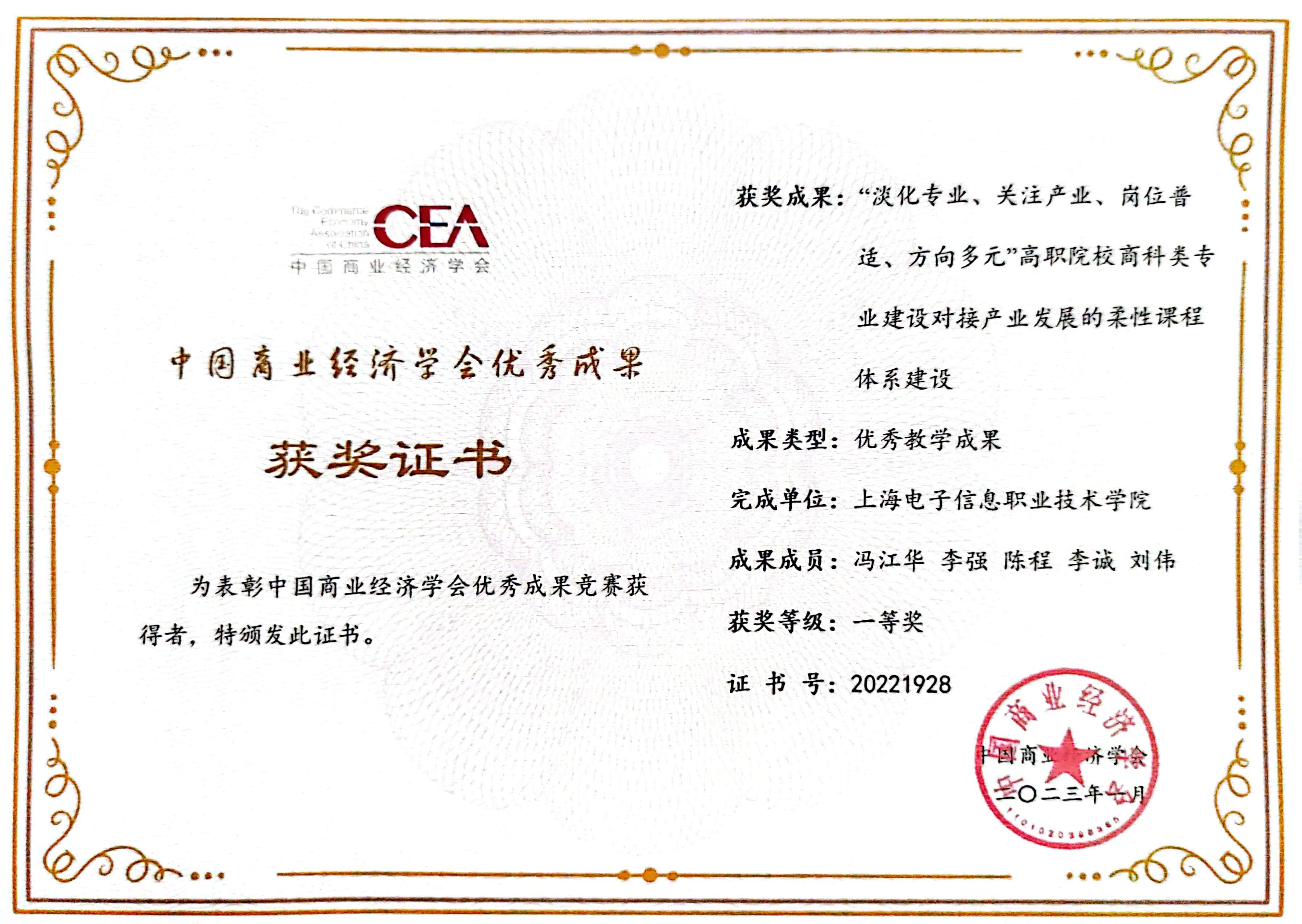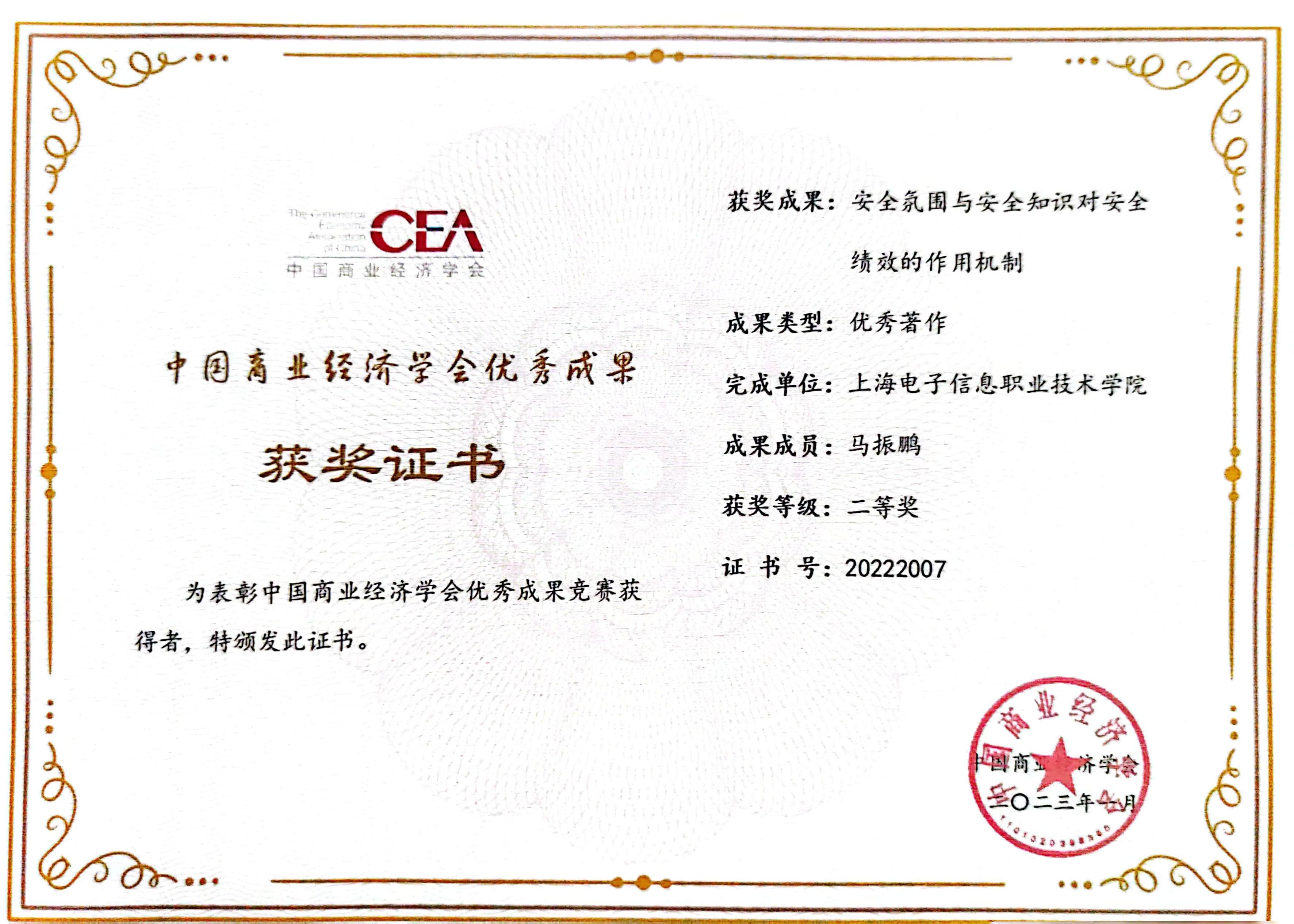 根据中国商业经济学会评审通知,我院教师冯江华主持的《“淡化专业、关注产业、岗位普适、方向多元”高职院校商科类专业建设对接产业发展的柔性课程体系建设》(证书编号:20221928)、马振鹏老师的《安全分为与安全知识对安全绩效的作用机制》(证书编号:20222007)分别被评为优秀教学成果一等奖和优秀著作二等奖。