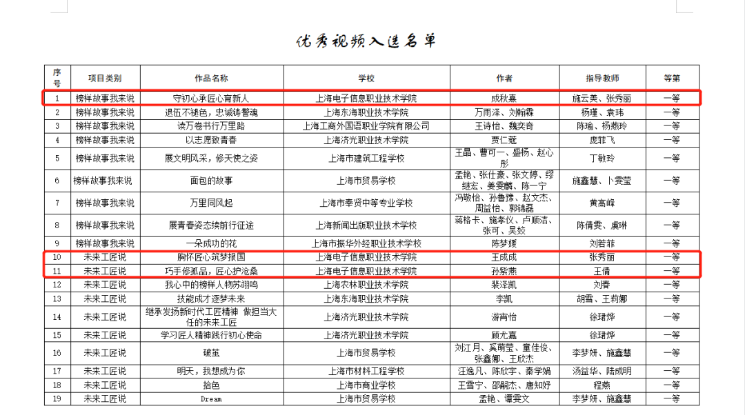 经学校申报、专家评审、网络公示等程序,我校多名师生斩获多项荣誉,经济与管理学院孙紫燕同学荣获“未来工匠说”微视频项目“一等奖”,王倩老师荣获“优秀指导教师”荣誉称号。