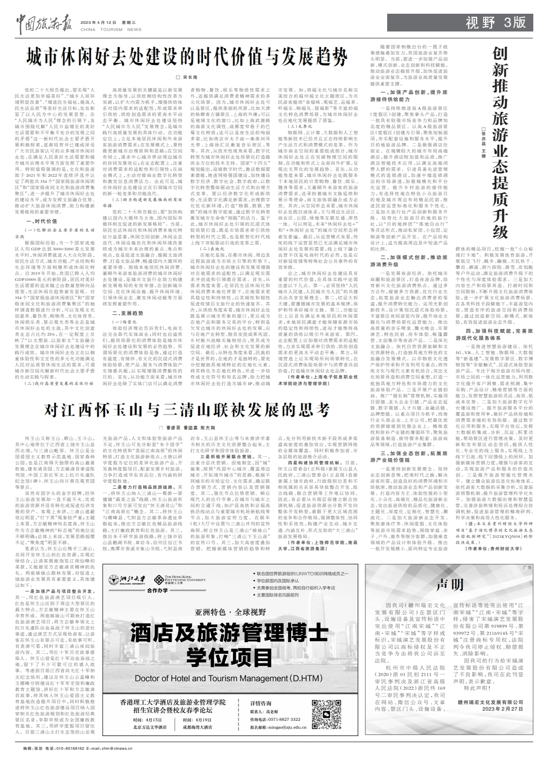 2023年4月12日,《中国旅游报》刊发我院宋长海老师最新研究成果《城市休闲好去处建设的时代价值与发展趋势》。人民日报平台和学习强国平台等多家权威媒体转载报道。