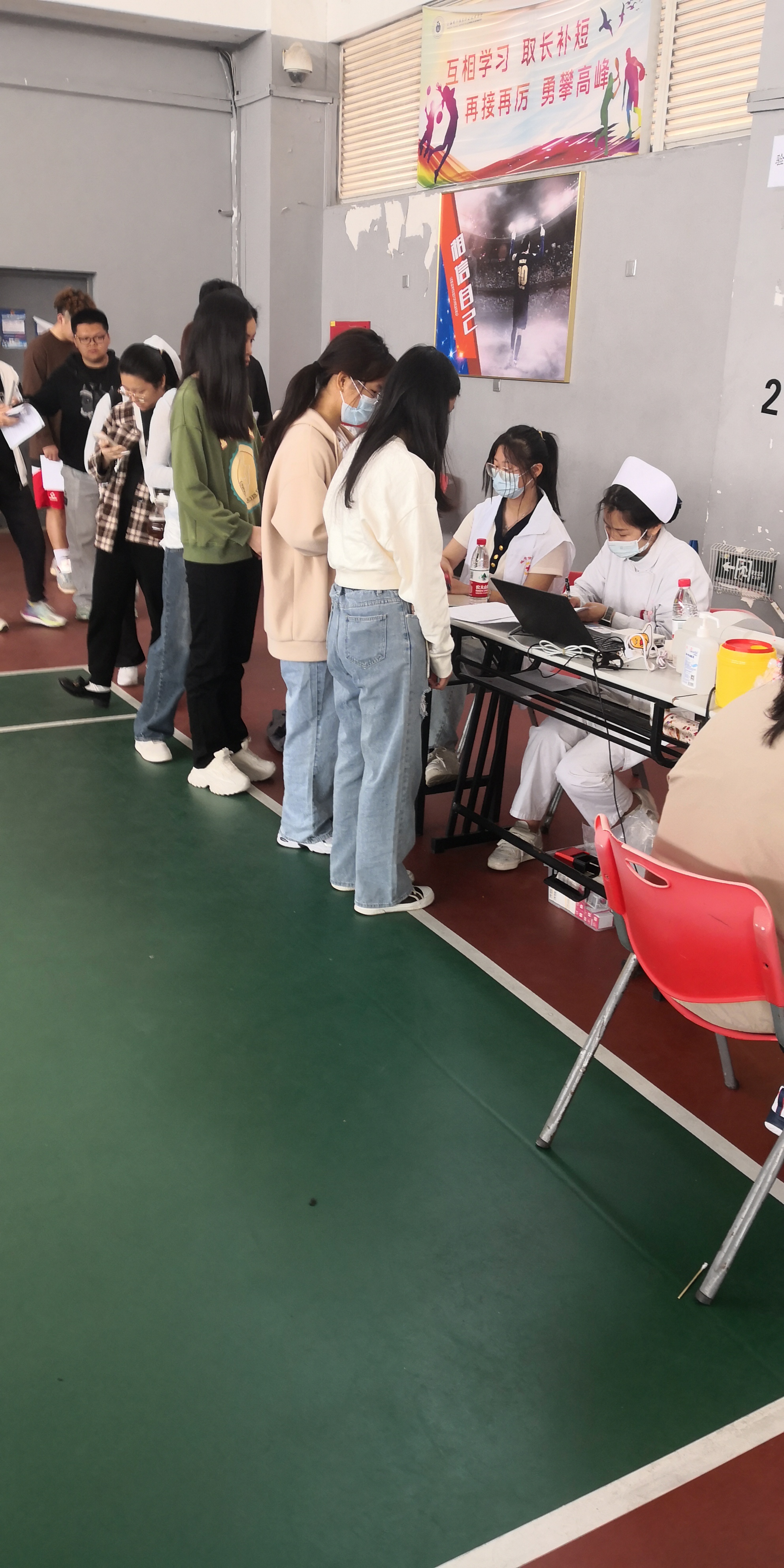 2023年4月27日,学校在奉贤校区开展爱心献血活动,经济与管理学院学生积极参加,共报名158人。
