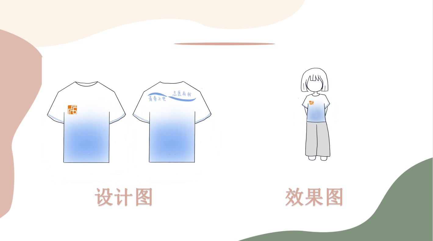 参赛作品以“青春上电 志愿有我”为设计主题,以功能性和职业性为设计重点。体现上海电子信息职业技术学院独有的人文特点与个性,从设计对象的职业实际需要出发,达到功能性与审美性的和谐统一。