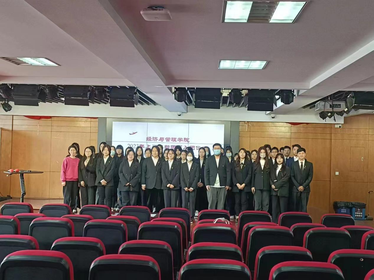 为深入贯彻落实党的二十大精神,学习习近平总书记关于青年工作的重要论述,继承和发扬共产党员精神;进一步团结动员新团员努力学习职业技能,不断提高大学生骨干的思想政治素质。经济与管理学院团总支于2023年5月11日在i401开展新团员入团仪式。出席此次活动的有经济与管理学院团总支书负责老师夏立芹,经济与管理学院团总支成员,以及本次新发展的团员,共计48人。