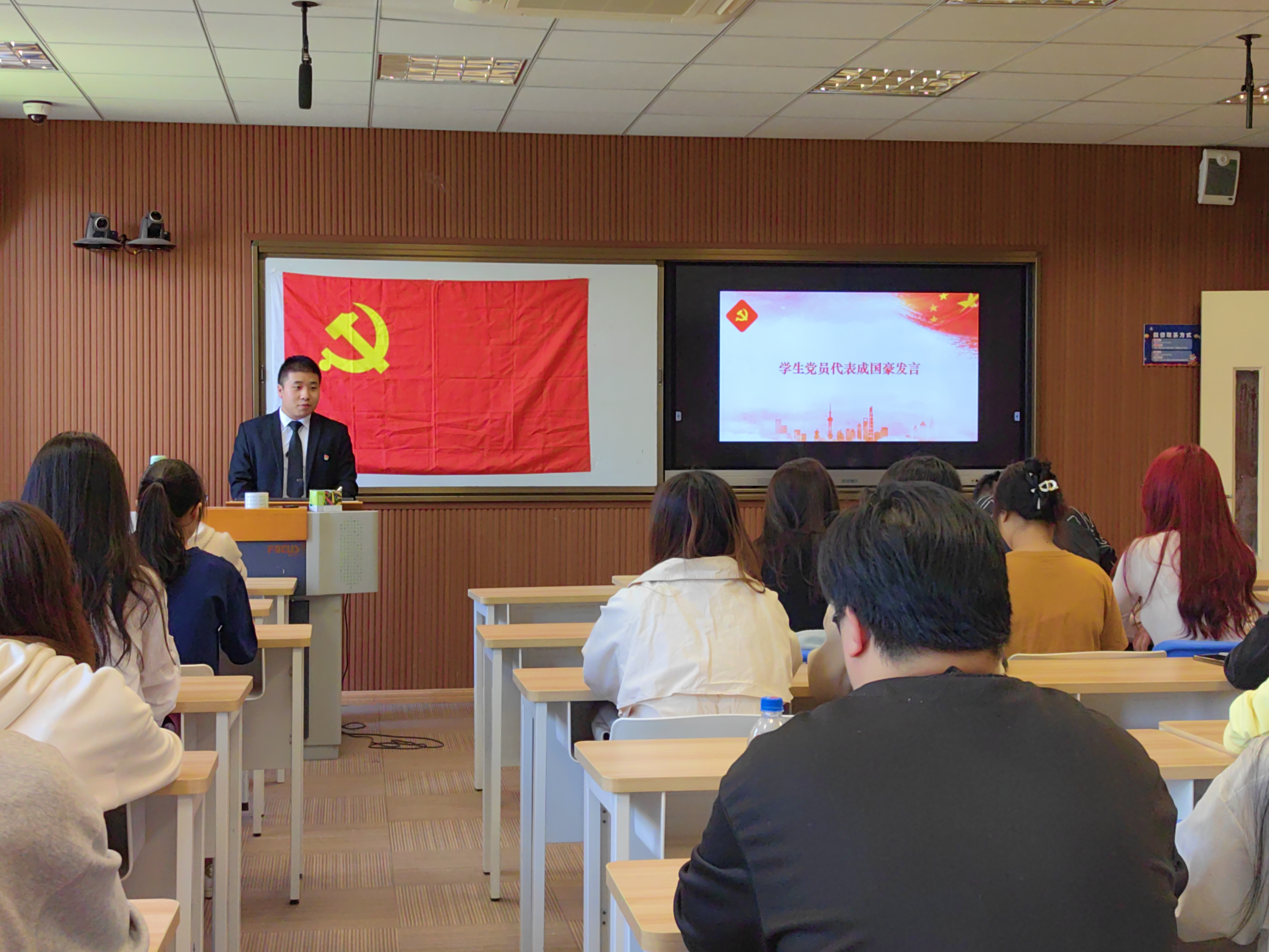 学生党员成国豪就自身的成长经历与学员进行了分享,鼓励学员们要加强理论学习,积极发挥先锋模范带头作用,自觉接受并正确对待党组织的培养和考察。