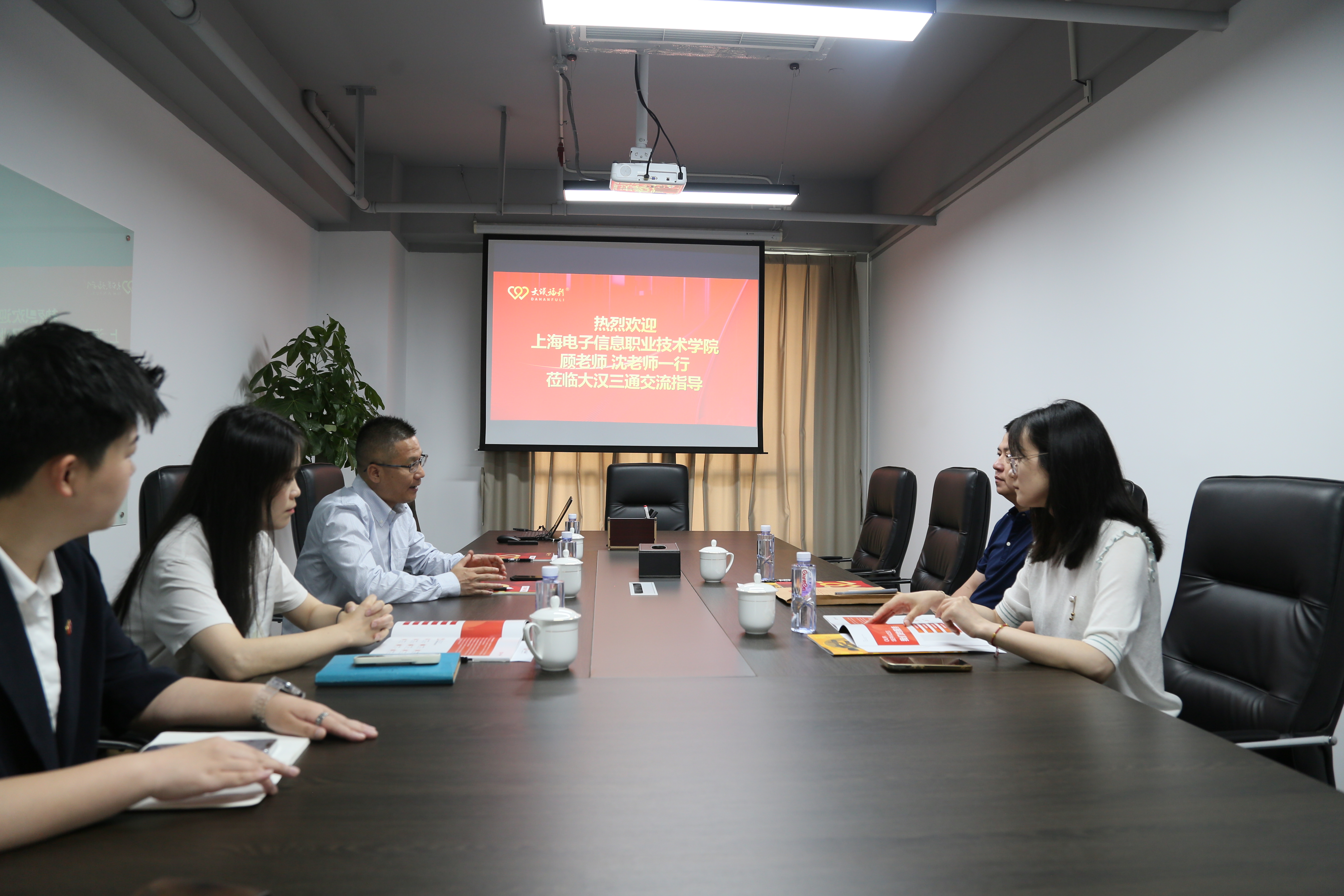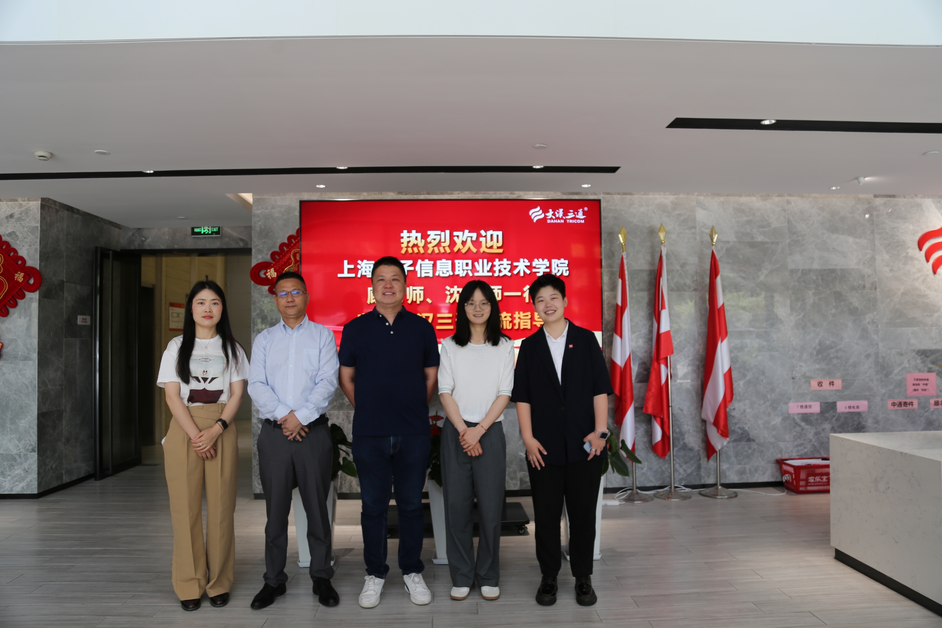 为持续贯彻落实教育部“访企拓岗促就业”专项行动的相关要求,进一步加深校企合作,充分发挥协同育人效应,加快促进毕业生高质量就业。2023年6月14日下午,我校校企合作处顾豪杰、经管学院就业专员沈慧一行前往走访了我院2015届会展策划与管理专业优秀校友马思杨所在企业——大汉三通集团。集团副总裁、工会主席曾斯生,副总裁王少杰,人事总监叶希霞,华东地区政企事业部总监杨敏华、销售经理马思杨参与接待。
