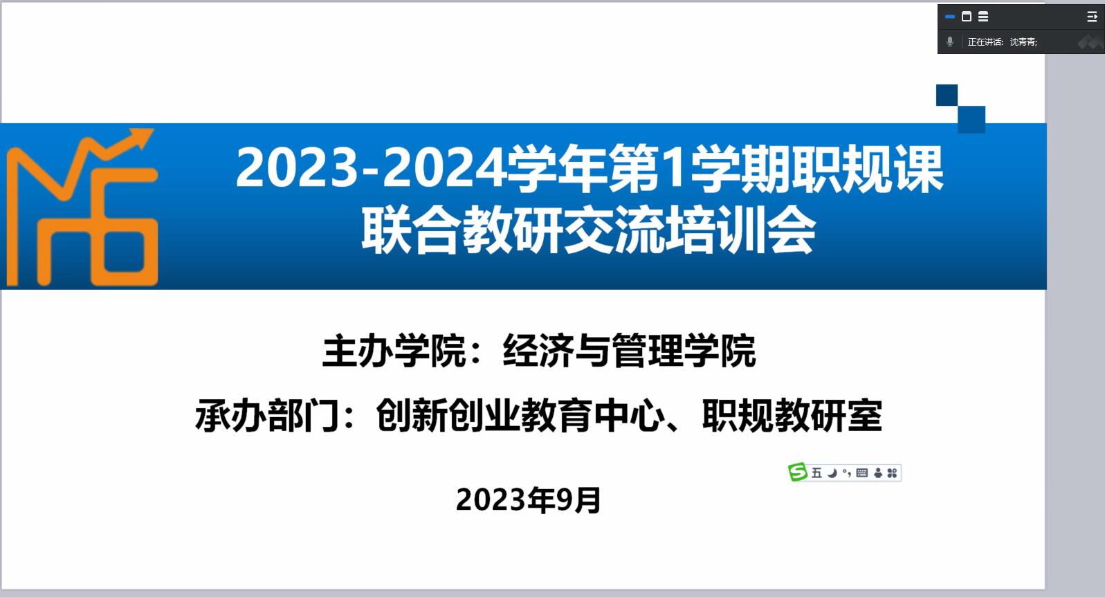 9月13日,职业生涯规划与职业指导教研室于线上召开2023-2024学年第1学期职规课全校性联合教研交流研讨活动,创新创业教育中心主任陈蓓蕾老师、各兄弟学院专兼教师共计24位教师参会。交流活动由职业生涯规划与职业指导教研室主任沈青青主持。
