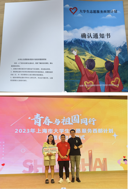自接到上级工作指示,我院高度重视西部计划志愿者宣传工作,经学生个人报名、学院团总支推荐、校团委审核、市项目办复试选拔综合评定及体检筛查,我院成国豪同学成功入选2023年大学生志愿服务西部计划志愿者,即将前往云南省嵩明县开展志愿服务。