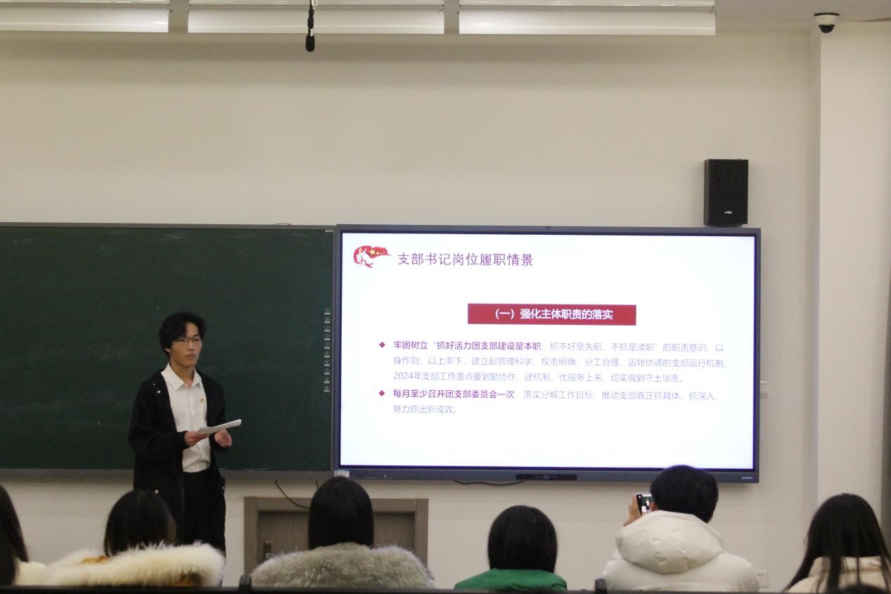会议伊始,经济与管理学院专业22级团支书们逐一上台,对2023年团支部概况、团支部取得的成绩以及自身工作总结等多方面开展工作汇报。在对前期工作提炼总结的基础上,各团支书也分析了本团支部的不足之处,提出改进措施,并对下一年的团支部工作开展做好计划。