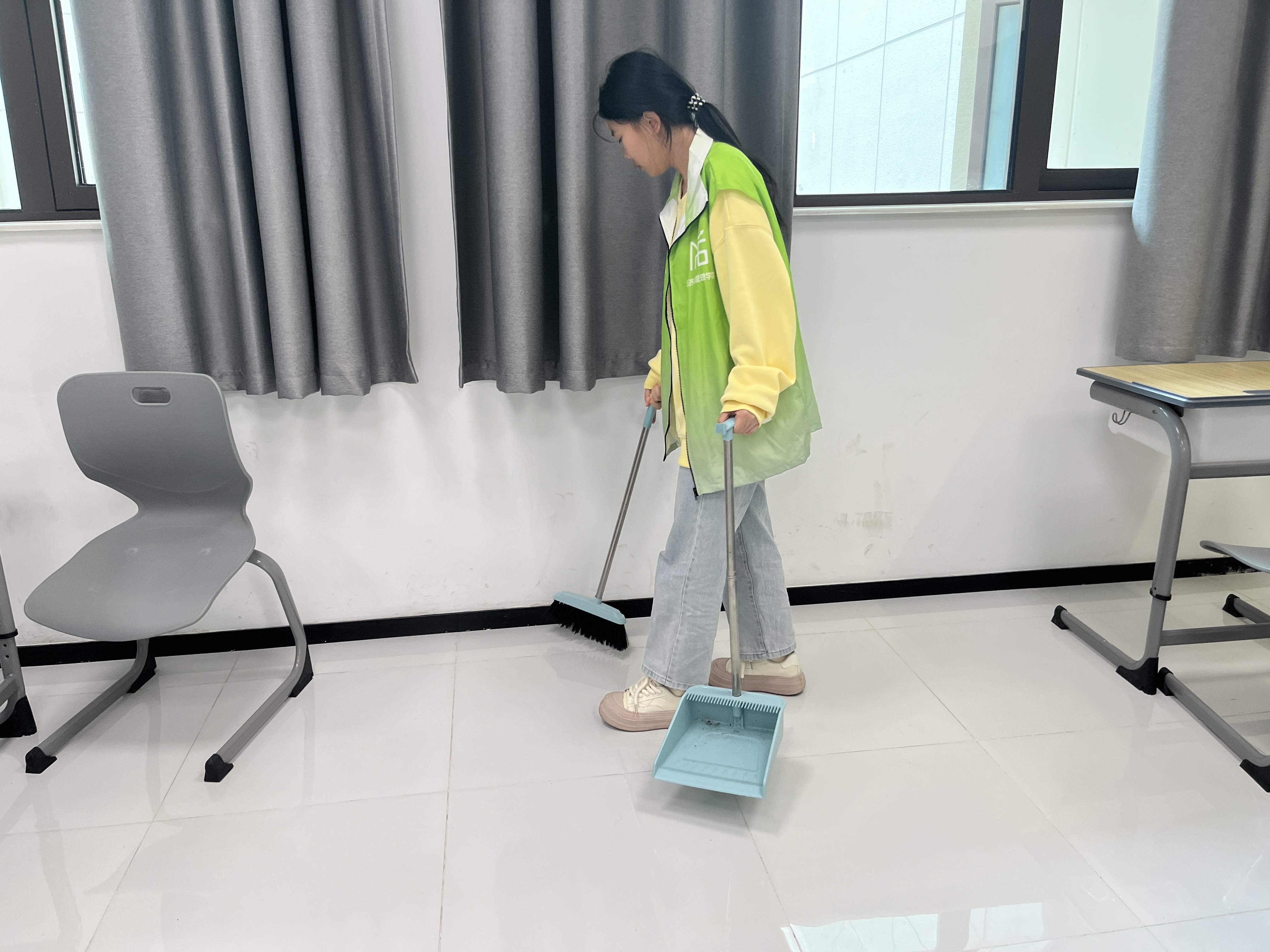 在本次活动中,易班平台设置的线上答题环节吸引了50多名同学积极参与,通过答题更加深刻地认识到了创建文明校园的重要性;在线下设置了打扫教室和实训室、垃圾分类、光盘行动等多个环节,旨在通过师生共同努力,打造一个整洁、有序、环保、文明的校园环境。其中,打扫教室和实训室是此次活动的主要内容之一。40位同学被分为8个队,分别打扫所对应的8个教室,确保每个角落都干净整洁。同学们积极参与,干劲十足,分工明确,合作默契,对教室和实训室的地面、桌椅、窗户、黑板等区域进行了彻底清洁。这不仅提高了同学们的劳动能力,还培养了他们的团队合作精神和责任意识。参与这次活动的同学纷纷表示:“通过清扫教室,我更加珍惜干净整洁的学习环境,进一步意识到了劳动的重要性。”