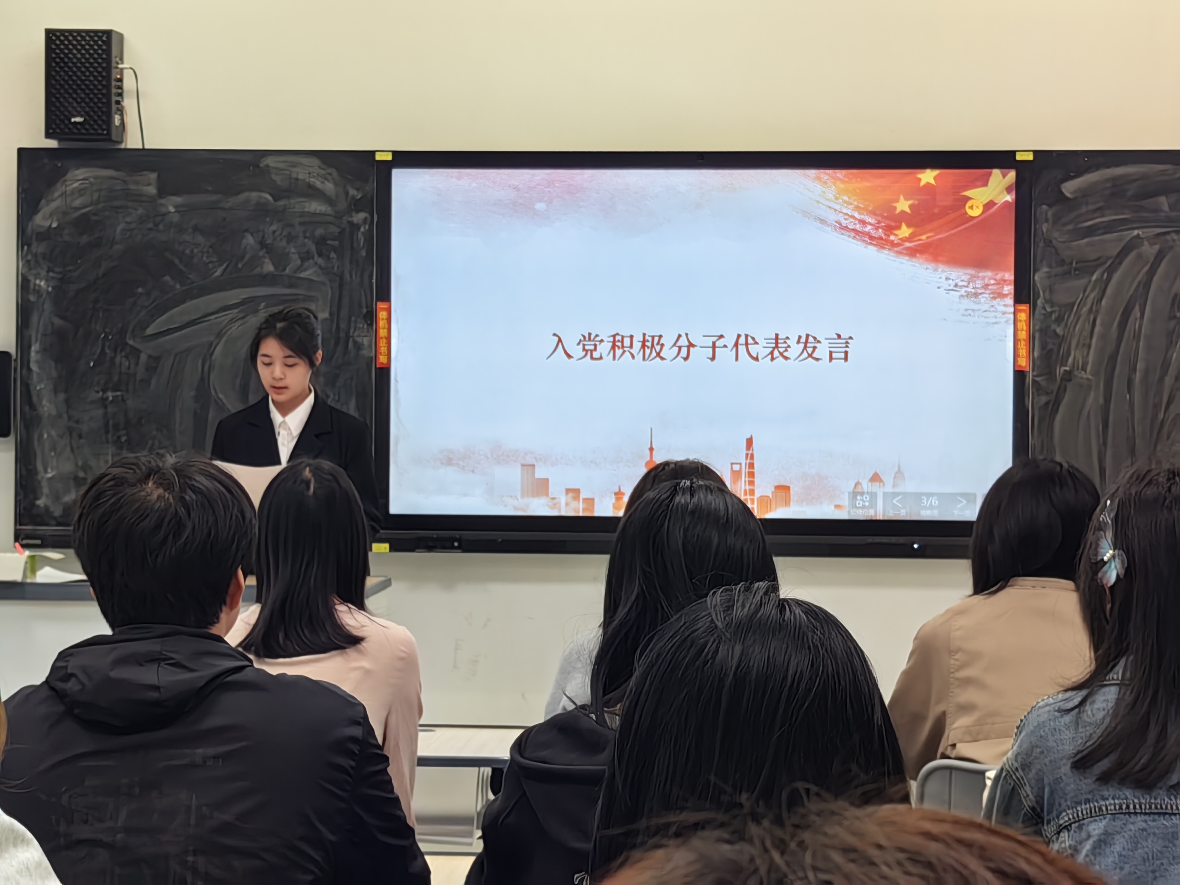 10月9日,经济与管理学院学生党支部在金山校区JS102教室举行了入党积极分子培训班开班仪式。仪式在庄严的国歌声中拉开帷幕。23跨境电商2班朱芸倩同学作为学员代表发言,她深情地阐述了自己的入党初心,表示将以积极、认真、严肃的态度对待此次学习,不断提高自身的思想觉悟和理论水平,争取早日加入中国共产党。