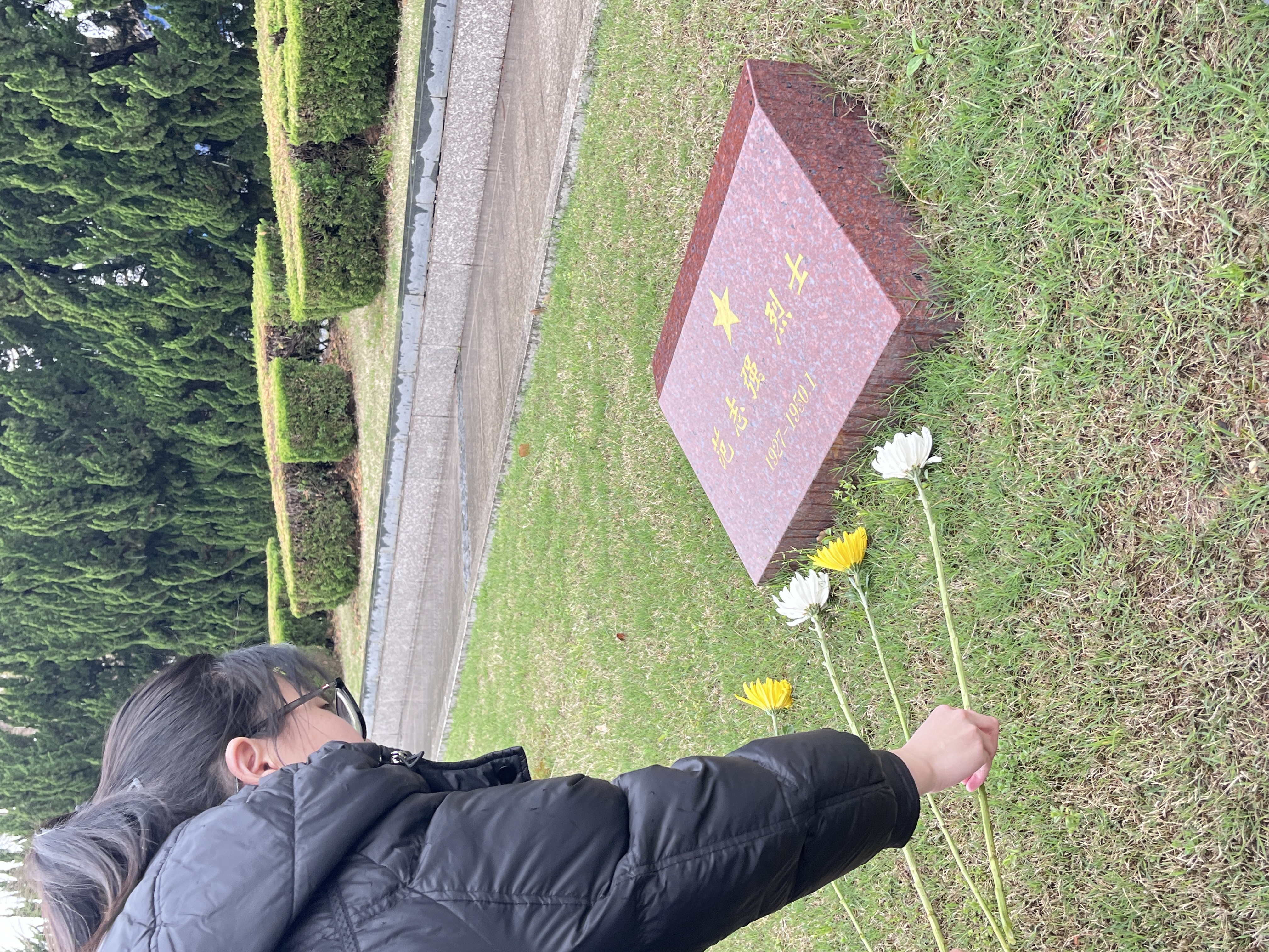 在团总支书记鲍昱含老师的带领下,同学们抵达金山区烈士陵园。全体成员整齐肃立,面对烈士纪念碑,默哀一分钟,以此表达对先烈们的深切哀思。随后,全体成员怀着崇敬之情,向革命烈士敬献鲜花。“青山有幸埋忠骨,松柏无言祭英魂。” 烈士们以热血和生命铸就的丰功伟绩,犹如巍峨青山,永载史册;他们崇高的精神,恰似苍翠松柏,万古长青,时刻鼓舞着同学们不断进取。