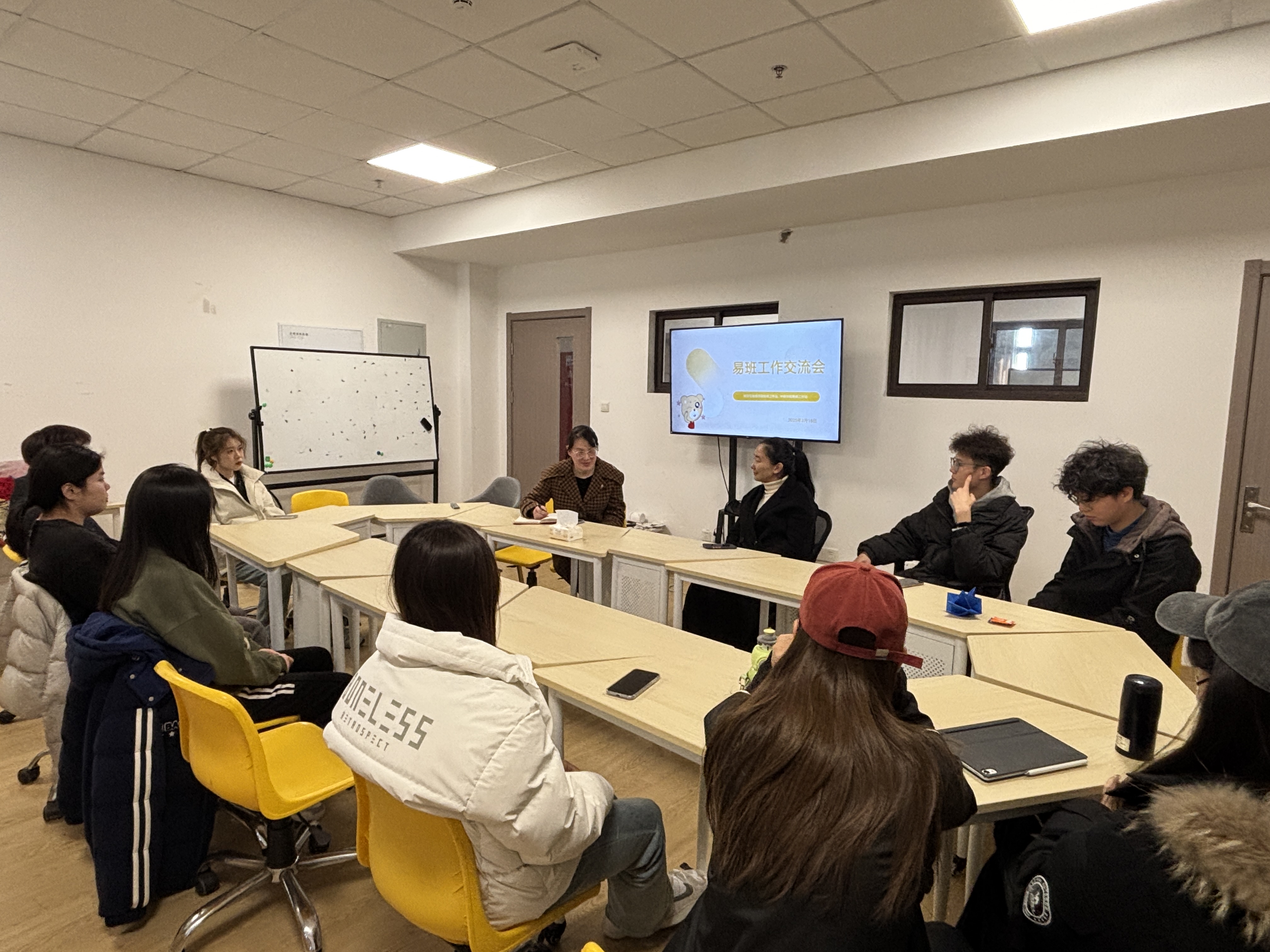 2025年3月18日,为进一步提升易班工作站的服务水平,加强学院间的交流合作,经济与管理学院易班工作站与中德学院易班工作站于3月18日下午在怀德楼905成功举办了一场工作交流会。双方就活动举办形式、与学生会合作、提升学生参与度等内容进行了深入探讨,并分享了各自的工作经验和心得体会。