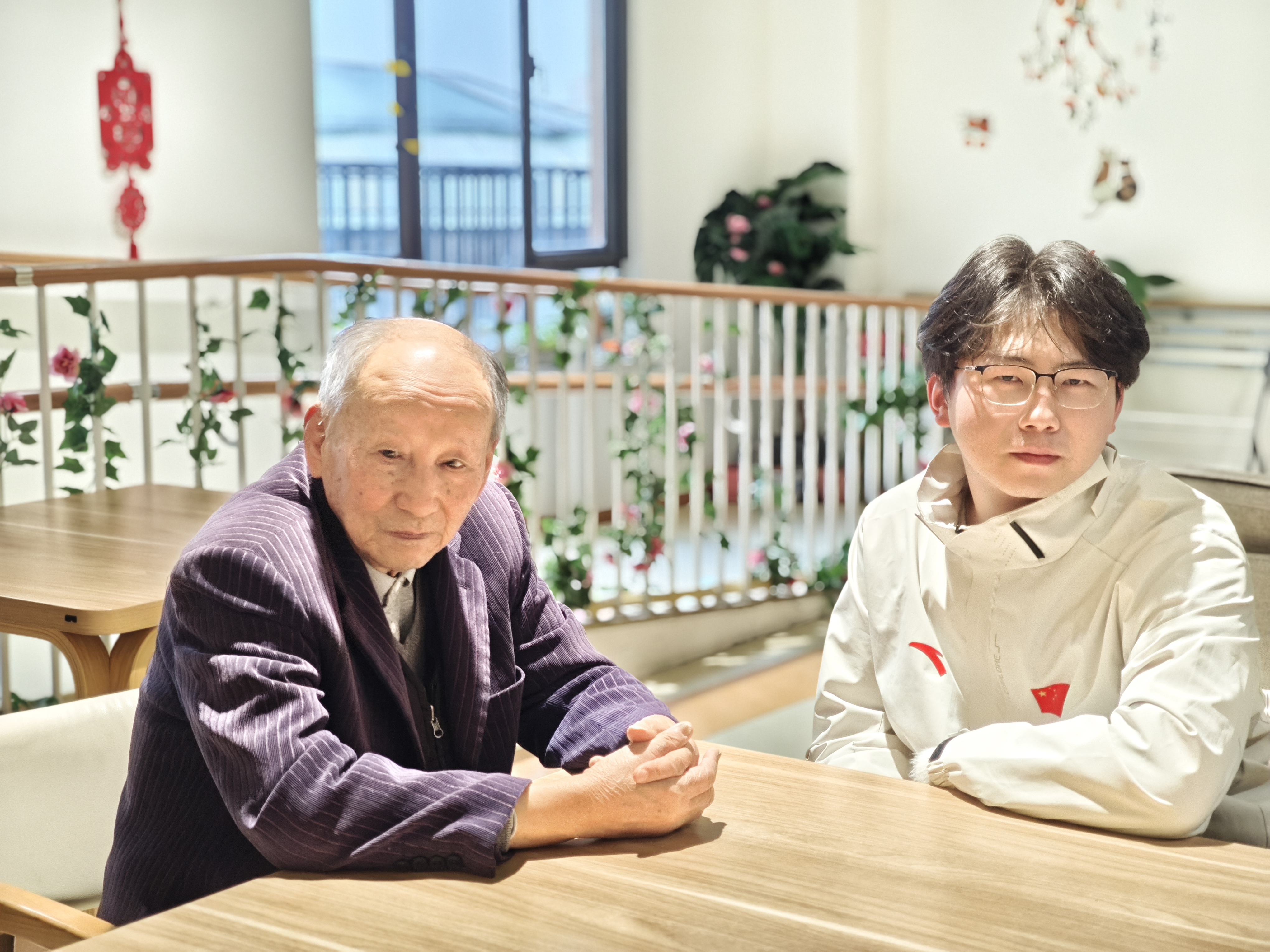 活动室休息区域,主打畅聊倾听。暖色的灯光柔和得照亮了整个大厅,同学们挨着老人坐着,握着他们的手,认真地听着那些久远的回忆。老人时而轻声细语,时而开怀大笑,每一句都饱含着岁月的沉淀,而同学们专注的神情,仿佛在用心铭记这每一个珍贵的瞬间,爱意在这个大厅里弥漫开来。